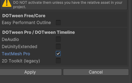 초록색 Setup DoTween을 누르면
