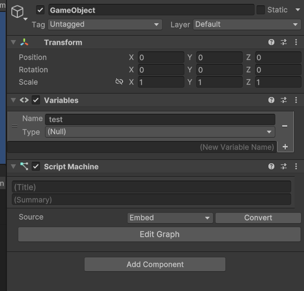 Graph는 이후 만든 Visual 스크립트가 에셋으로 저장되어
