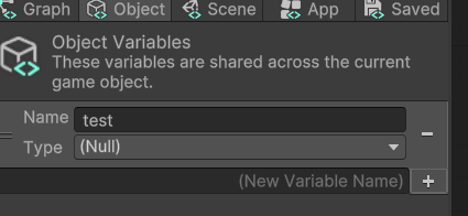 Object를 누르고 test라는 이름으로 변수를 하나 생성했습니다.