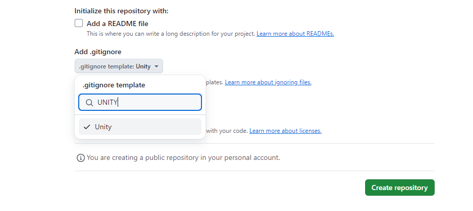 처음 생성할 때 .ignore에 가서 템플릿을 선택 후 (저는 제 상황에 맞는 Unity 택) 등록해 주면 됩니다.
