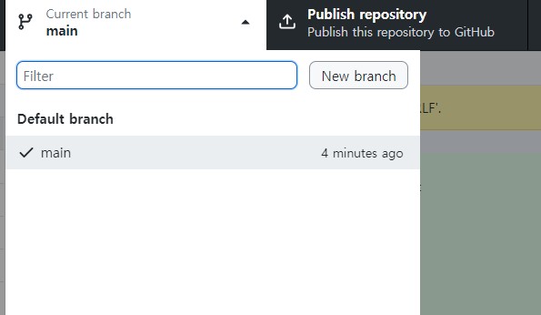 Current branch를 보면 main으로 설정되어 있는 걸 확인 할 수 있습니다.