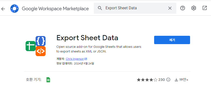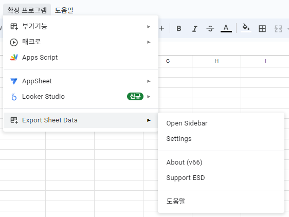 Export Sheet Data를 검색하시고 다운 받아주시면 됩니다.