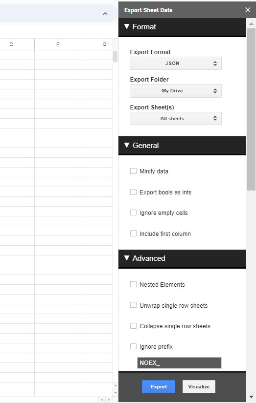 작업한 스프레드시트를 간단하게 JSON으로 바꿀 수 있었습니다.