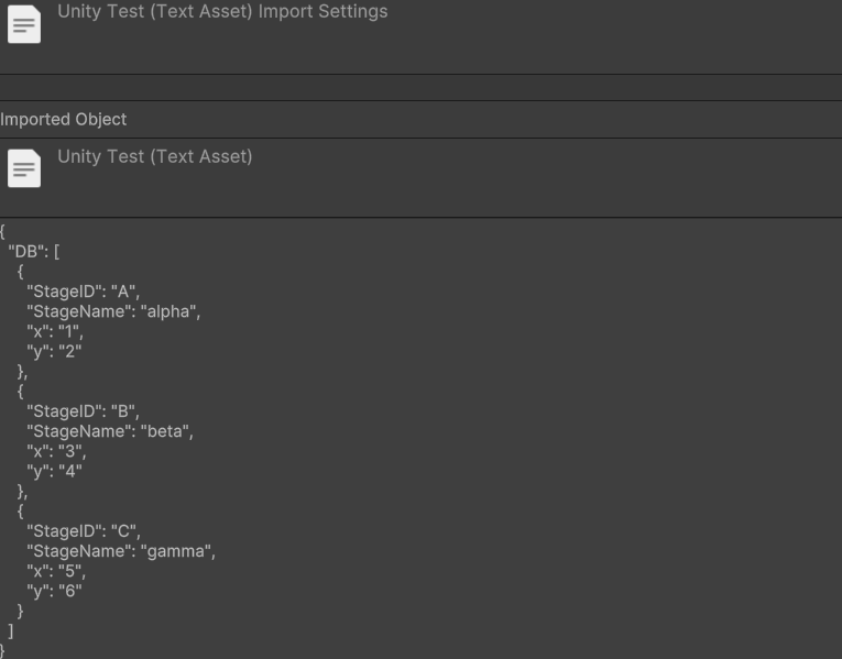 JSON 파일을 유니티로 불러와 데이터를 활용하면 됩니다.