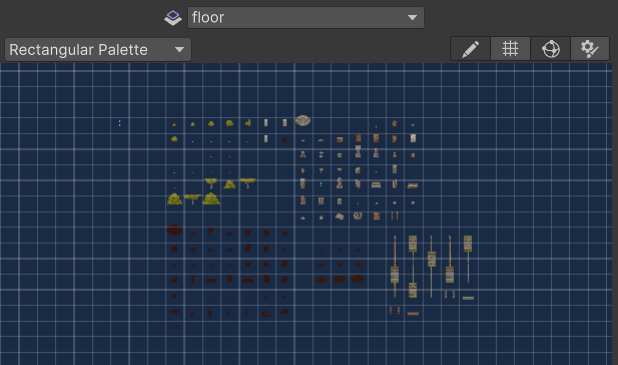 만든 타일들은 기존 방식과 같이 타일 팔레트 위에 올린 후 사용할 수 있습니다.