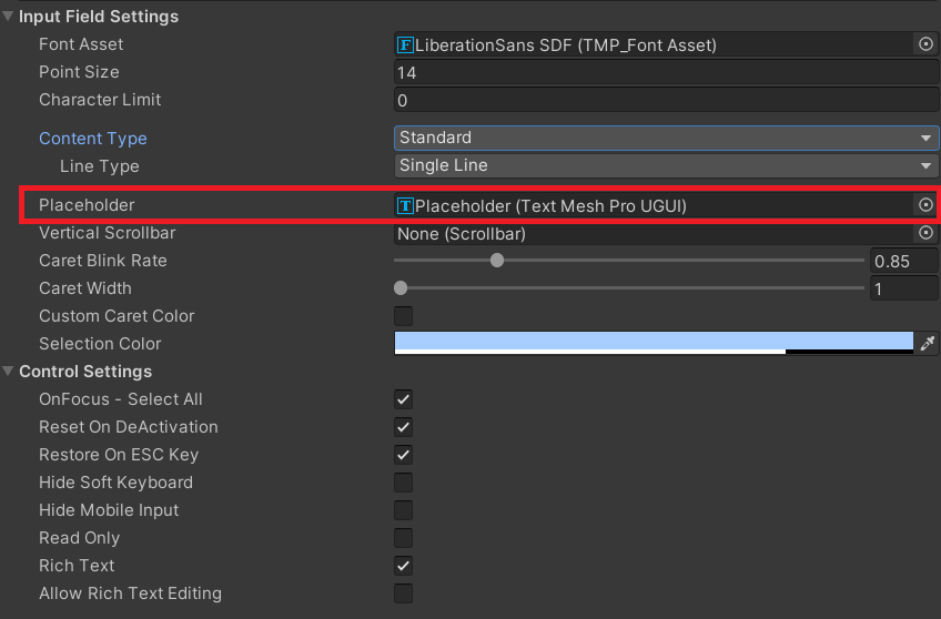 입력 필드 - Unity 매뉴얼