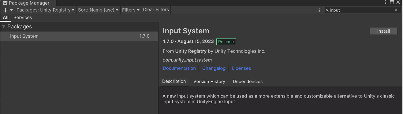 Input System을 사용하려면 먼저 패키지 메니저에 가서 추가를 해줘야 합니다.
