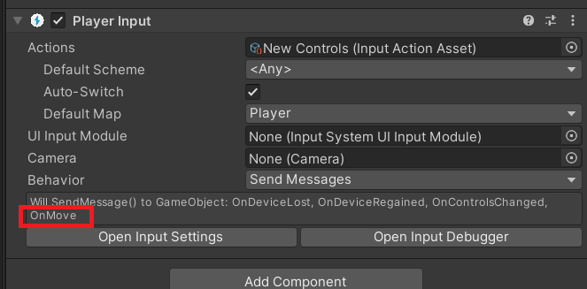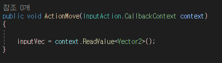 이전에 Actions에서 만들었던 Move를 OnMove라는 함수로 호출할 수 있게 되었습니다.