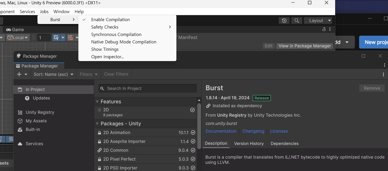 그중 Burst는 유니티 내부에서 사용하고자 만든 컴파일러입니다.