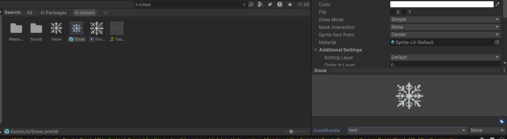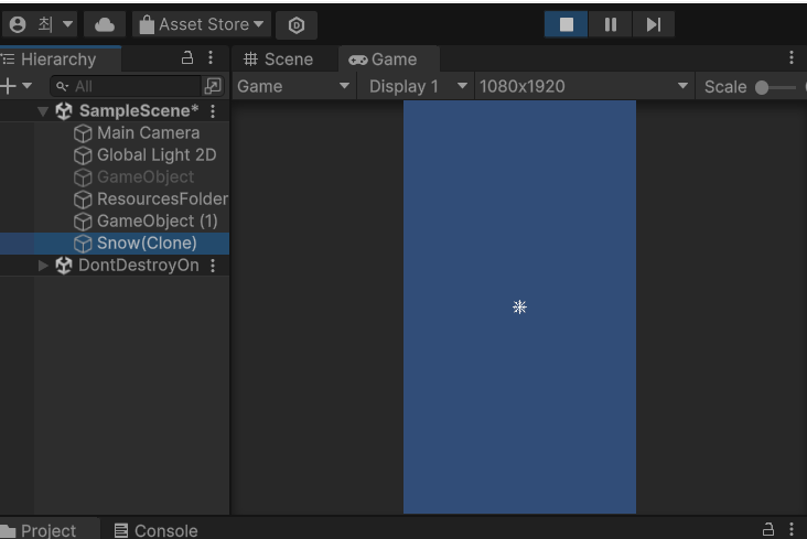 AssetBundle test안에 있는 내용에서 Snow라는 GameObject를 불러와 생성해봤습니다.