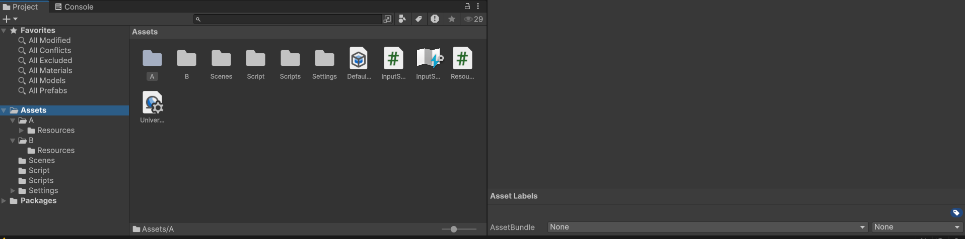 우측 하단을 보면 AssetBundle이라는 메뉴가 있습니다.