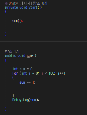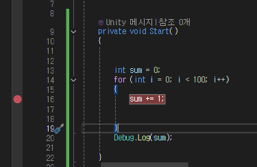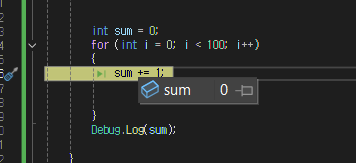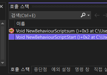 실행했을 때 호출 스택을 보면 Start()에서 sum()을 호출한 걸 확인 할 수 있었습니다.