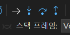 한 단계씩 진행, 프로시저 단위 실행, 프로시저 나가기 기능입니다.