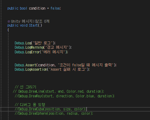 https://docs.unity3d.com/kr/2023.2/ScriptReference/Debug.html