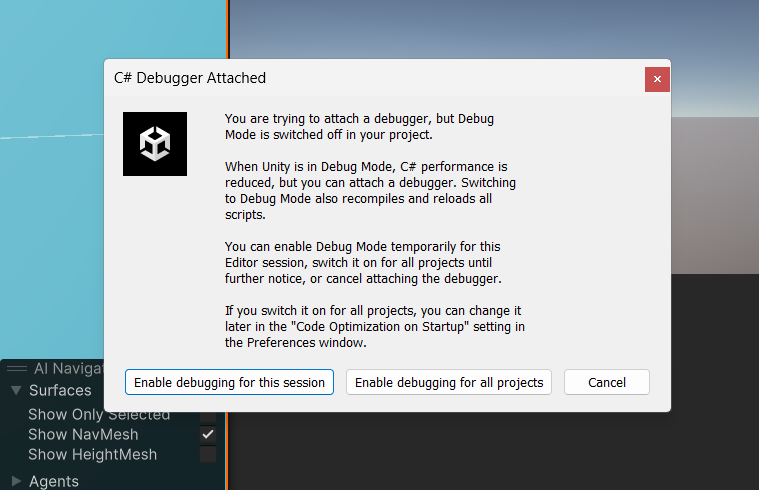 다음과 같은 창이 뜰 텐데 Enable debugging을 누르면