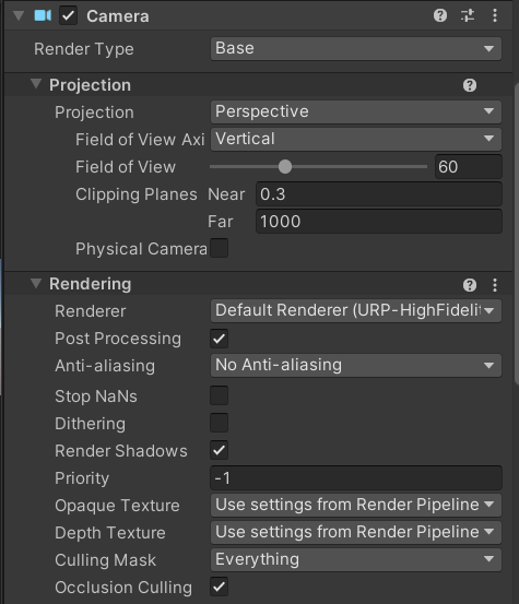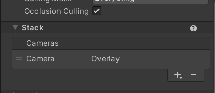 (stacking 할 카메라의 Render Type은 Overlay로 설정해 주어야 합니다.)