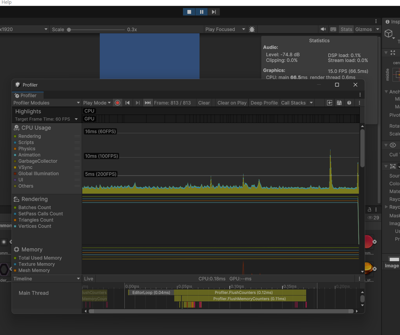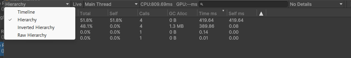 Unity 프로파일러는 애플리케이션의 성능 정보를 알려주는 툴입니다.